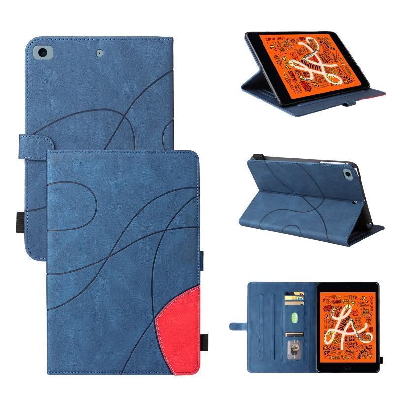 Dual-color Splicing Horizontal Flip PU Leather Case with Holder & Card Slots & Sleep / Wake-up Function For iPad mini/mini 2/mini 3/mini 4/mini(2019)(Blue)