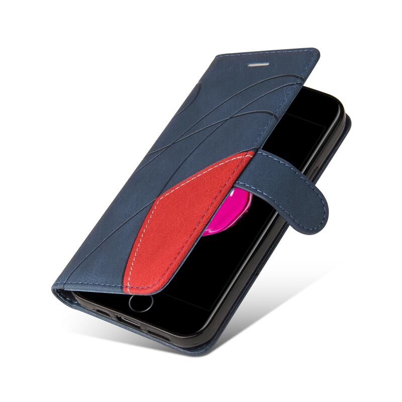 Δερμάτινη θήκη πολυουρεθάνης διπλής απόχρωσης με οριζόντιο άνοιγμα, με βάση & υποδοχές καρτών & πορτοφόλι για iPhone 8 Plus / 7 Plus (Μπλε)