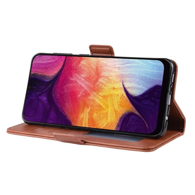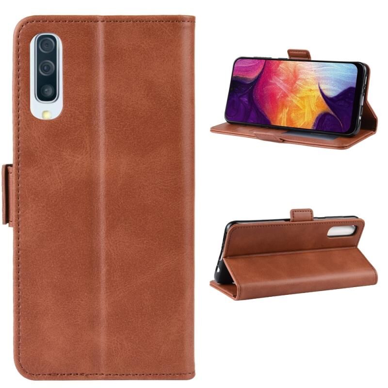 Διπλής όψης μαγνητική αγκράφα οριζόντια Flip δερμάτινη θήκη για Galaxy A50, με θήκη & υποδοχές για κάρτες & πορτοφόλι & κορνίζα φωτογραφιών (καφέ)