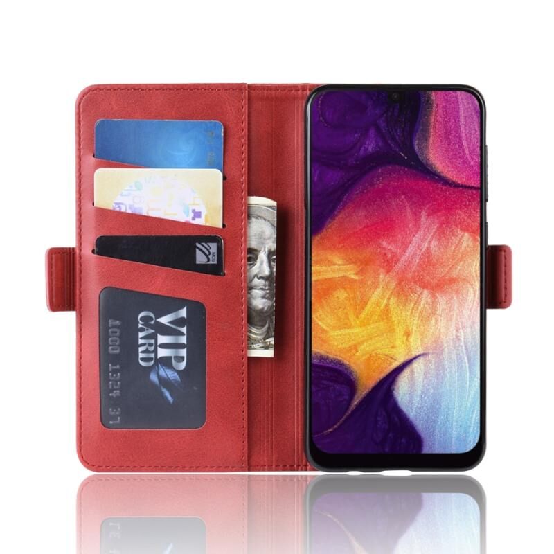Διπλής όψης μαγνητική αγκράφα οριζόντια Flip δερμάτινη θήκη για Galaxy A50, με θήκη & υποδοχές για κάρτες & πορτοφόλι & κορνίζα φωτογραφιών (κόκκινο)