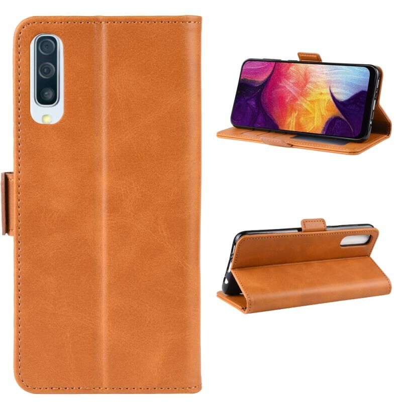 Διπλής όψης μαγνητική αγκράφα οριζόντια Flip δερμάτινη θήκη για Galaxy A50, με θήκη & υποδοχές για κάρτες & πορτοφόλι & κορνίζα φωτογραφιών (κίτρινο)