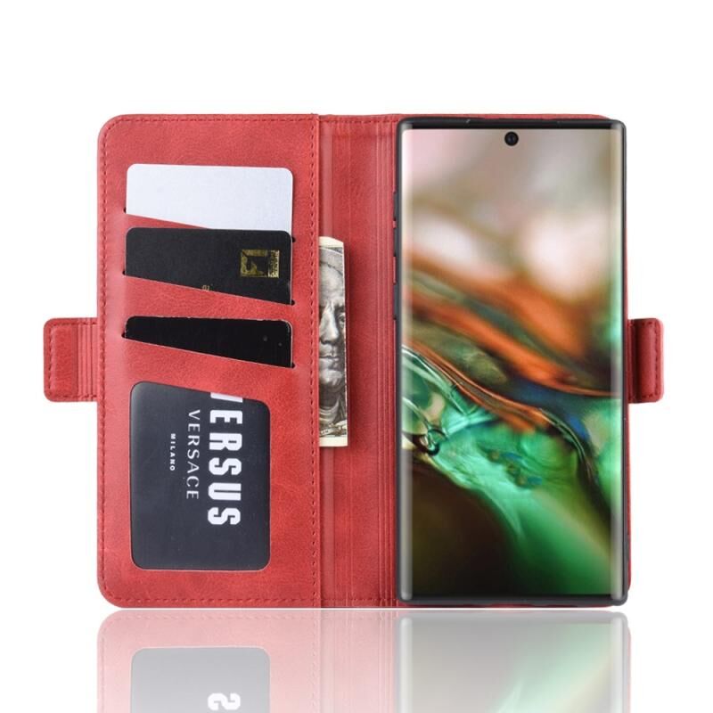 Dual-side Magnetic Buckle Horizontal Flip Leather Case for Galaxy Note 10, with Holder & Card Slots & Wallet & Photo Frame(Red)