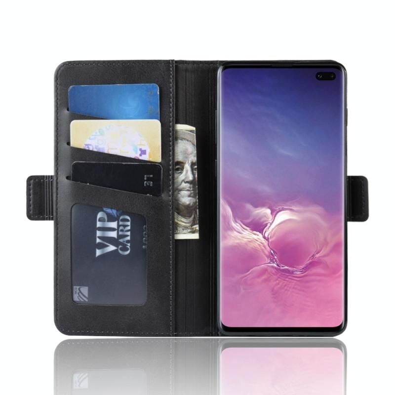 Διπλής όψης μαγνητική αγκράφα οριζόντια Flip δερμάτινη θήκη για Galaxy S10 Plus, με θήκη & υποδοχές για κάρτες & πορτοφόλι & κορνίζα φωτογραφιών (Μαύρο)