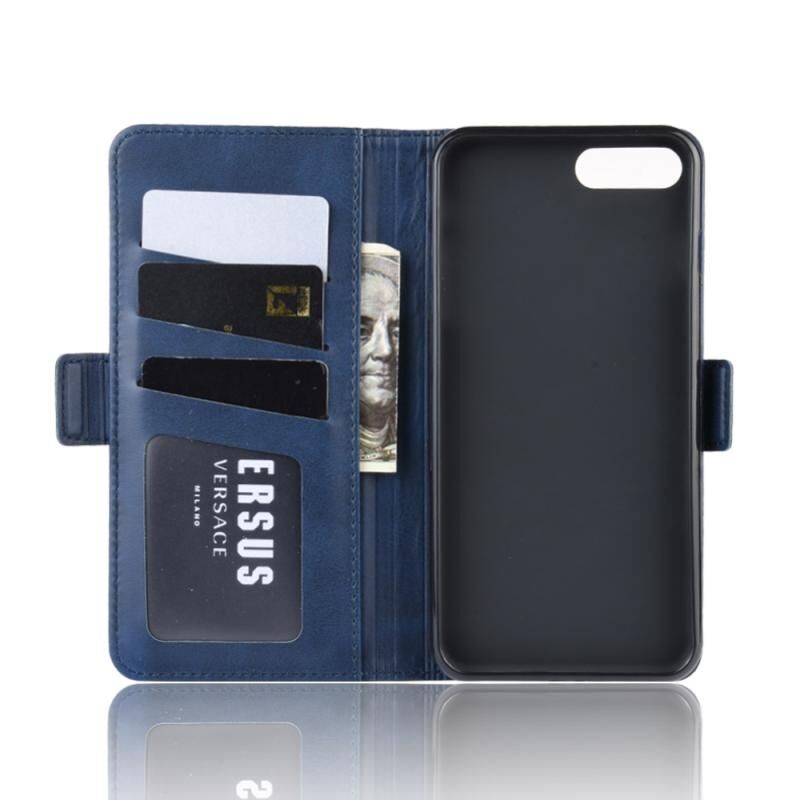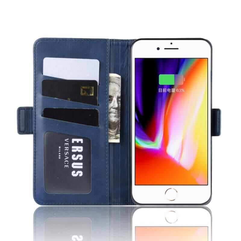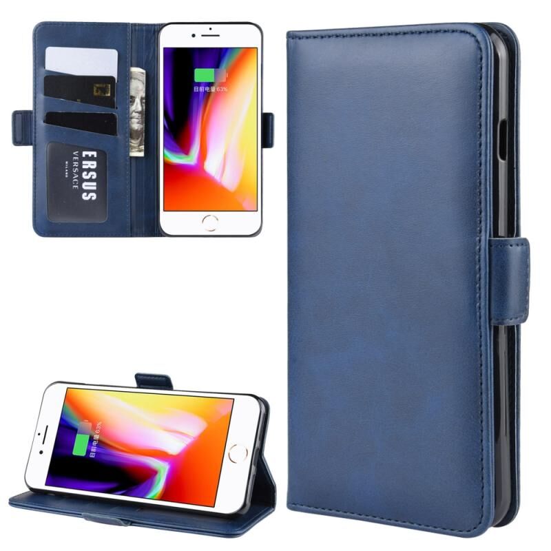 Δερμάτινη θήκη τύπου flip με μαγνητικό κούμπωμα διπλής όψης για iPhone 8 Plus / 7 Plus, με βάση & υποδοχές καρτών & πορτοφόλι & κορνίζα φωτογραφιών (Σκούρο μπλε)