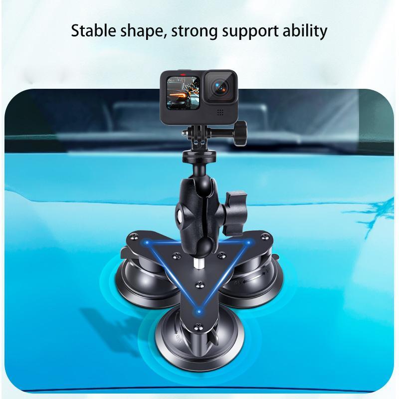 Dual Suction Cup Mount Holder with Tripod Adapter & Screw & Phone Clamp & Anti-lost Silicone Net for for GoPro, Insta360, DJI and Other Action Cameras, Smartphones(Black)