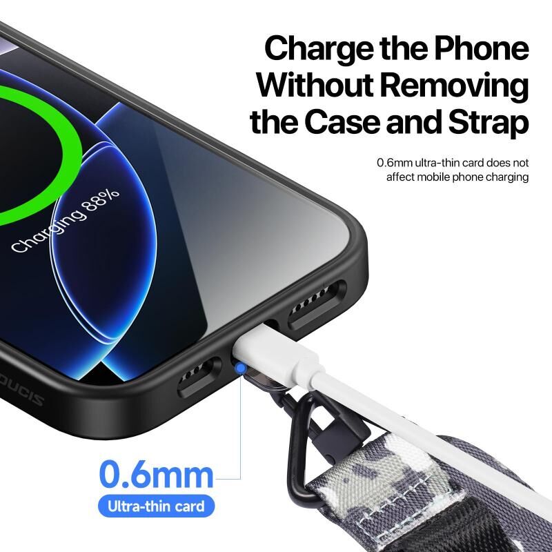 3. Υλικά: Το μήκος του κορδονιού μπορεί εύκολα να προσαρμοστεί στις προσωπικές προτιμήσεις: Κατασκευασμένο από ανθεκτικά, ανθεκτικά στο σχίσιμο υλικά υψηλής ποιότητας, το κορδόνι εξασφαλίζει μακροχρόνια χρήση και ασφάλεια, αποτρέποντας τυχαίες πτώσεις ή ζημιές στο τηλέφωνό σας.