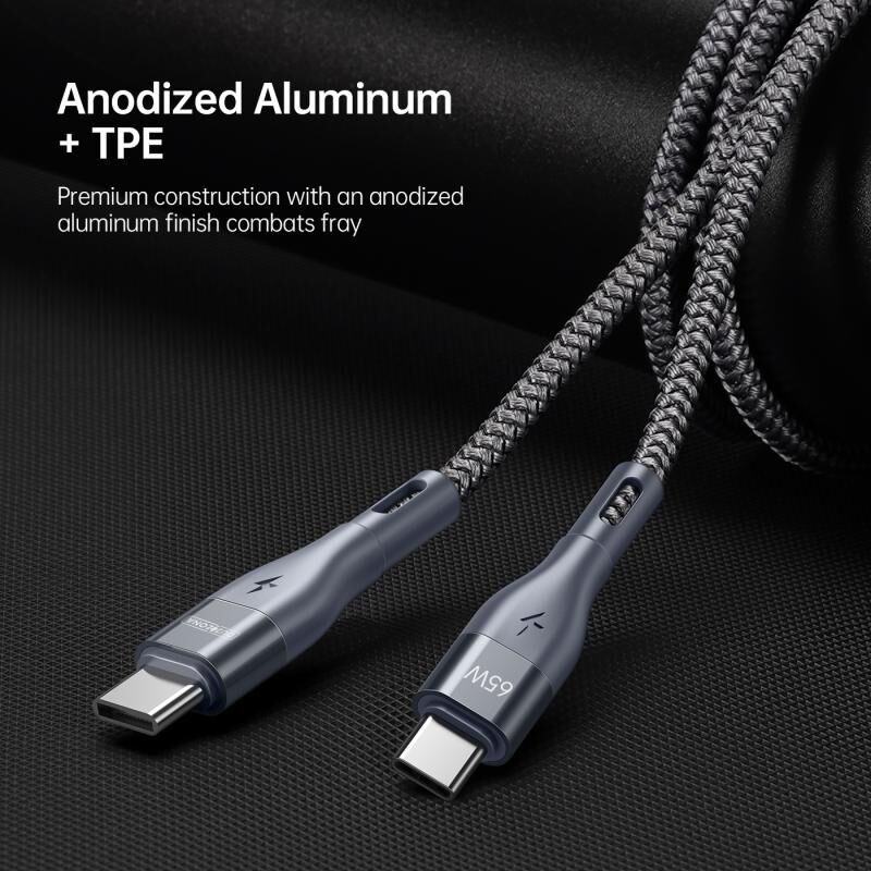 Καλώδιο Γρήγορης Φόρτισης και Μεταφοράς Δεδομένων DUZZONA A2 PD 65W USB-C / Type-C σε Type-C, Μήκος: 1m (Γκρι) (DUZZONA)