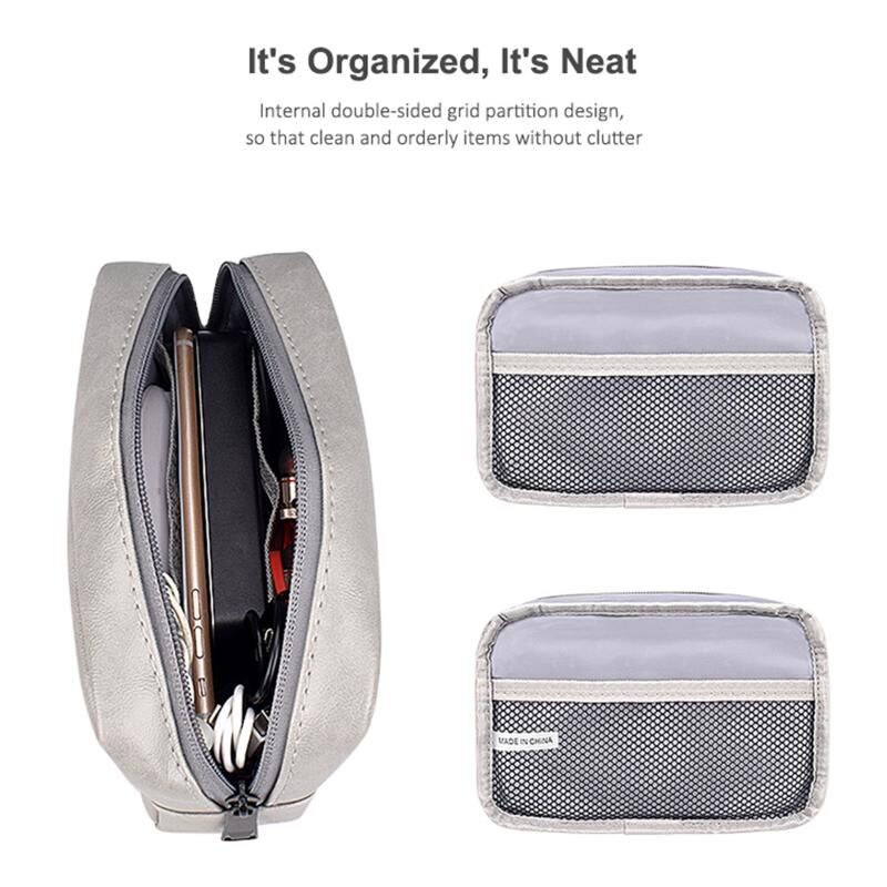 DY03 Φορητή δερμάτινη τσάντα ψηφιακών αξεσουάρ (γκρι)