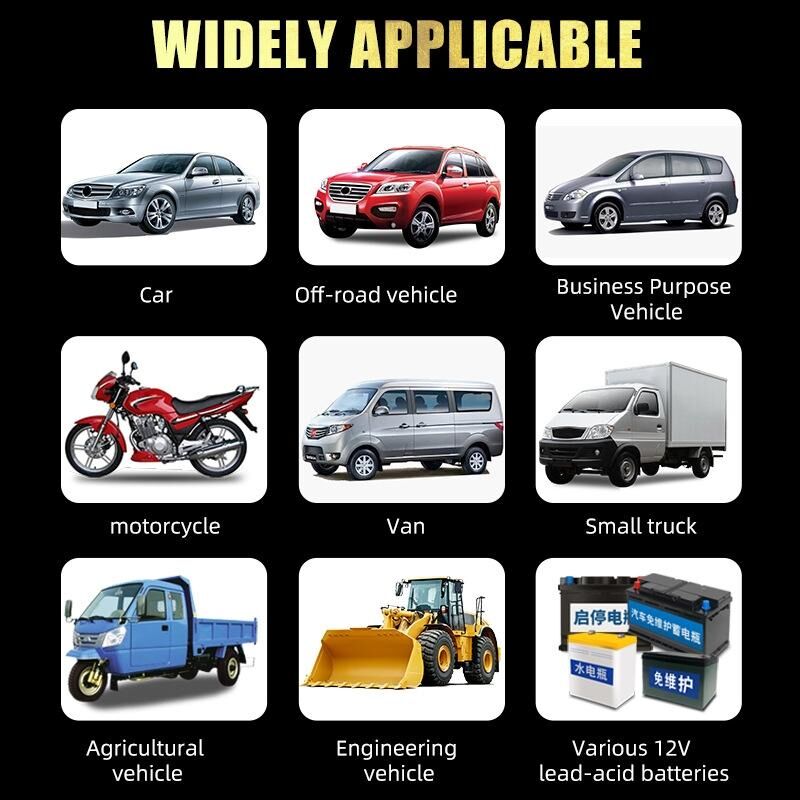 19. Μπορεί να χρησιμοποιηθεί ως έξυπνος φορτιστής για κοινές μπαταρίες μολύβδου-οξέος, μπαταρίες υγρού-ξηρού τύπου, μπαταρίες AGM start-stop και μπαταρίες πολλαπλών λειτουργιών, και χρησιμοποιείται ευρέως σε αυτοκίνητα, μοτοσικλέτες, φορτηγά, ETC