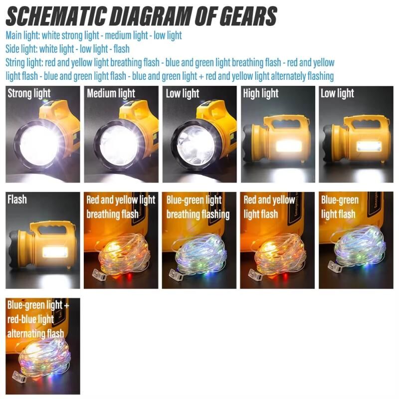 - Χρωματιστό φως: κόκκινο και κίτρινο φως αναπνοής και φλας, μπλε και πράσινο φως αναπνοής και φλας, κόκκινο και κίτρινο φως φλας, μπλε και πράσινο φως φλας, μπλε και πράσινο φως + κόκκινο και κίτρινο φως εναλλάξ φλας