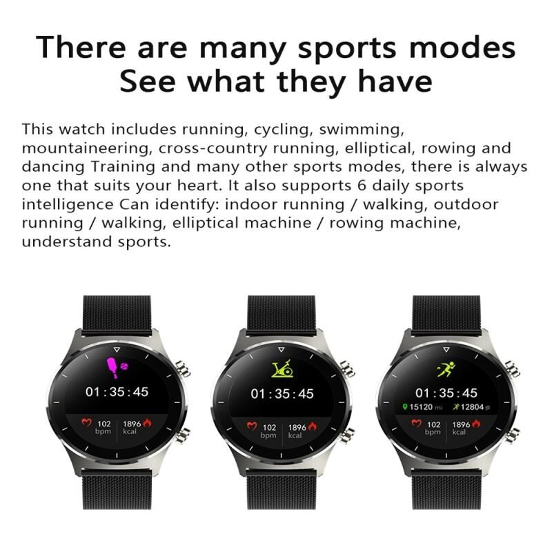 E13 1.28 inch IPS Color Screen Smart Watch, IP68 Waterproof, Steel Watchband, Support Heart Rate Monitoring/Blood Pressure Monitoring/Blood Oxygen Monitoring/Sleep Monitoring(Black)
