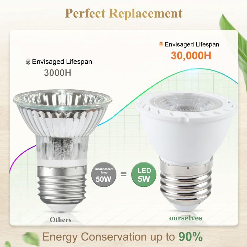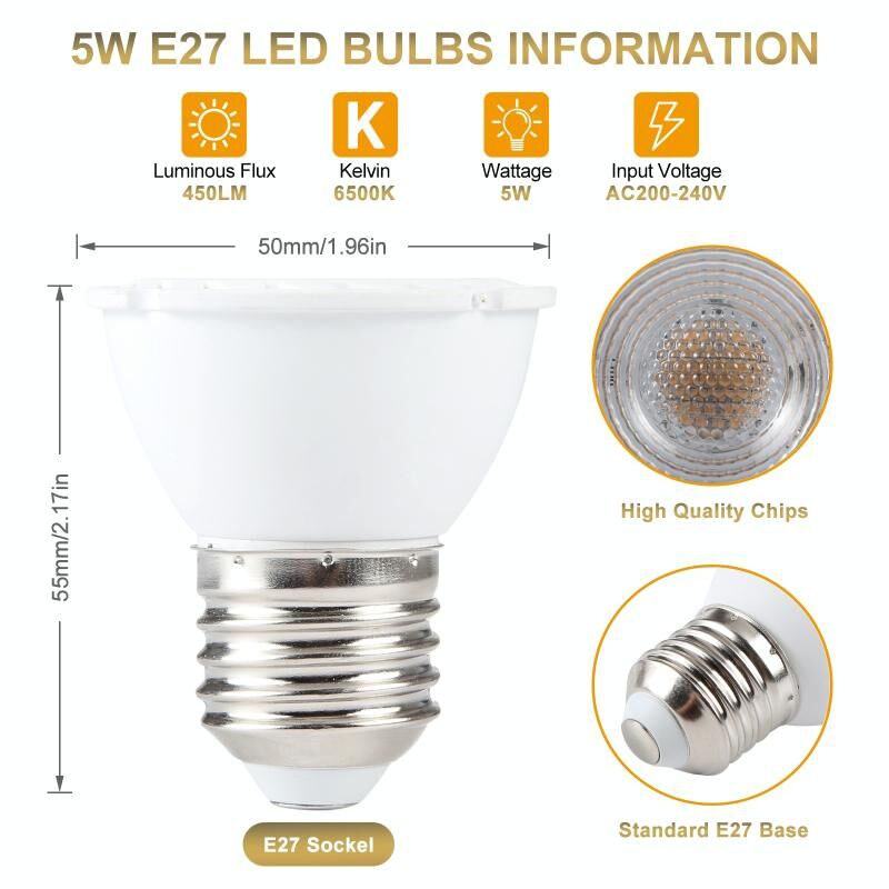 3. Easy Installation: Size: Approx 50x50mm.Directly install the bulb into a medium E27 Medium Base scokets, perfectly replace your existing halogen spotlight.