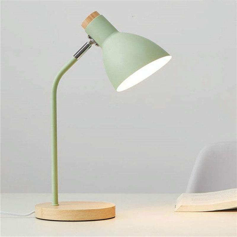Επιτραπέζιο φωτιστικό E27 με διακόπτη, ξύλινη βάση & μεταλλική σκίαση για κομοδίνο/ανάγνωση. (Πράσινο)