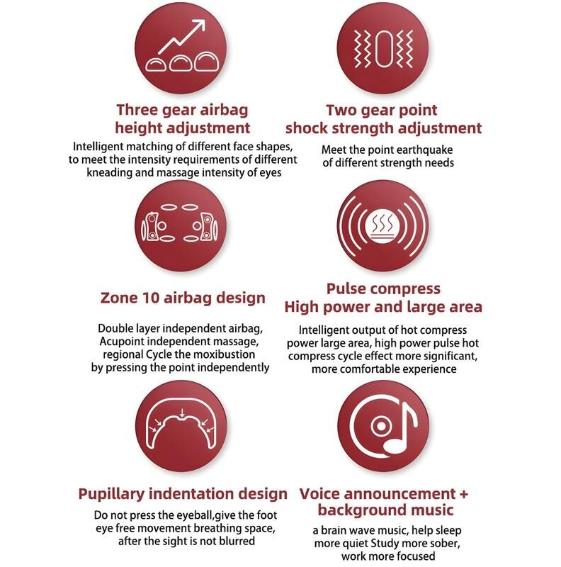 2. Three levels of airbag height adjustment, intelligently match different face shapes, and meet the strength requirements of different kneading and massage strengths of the eyes
