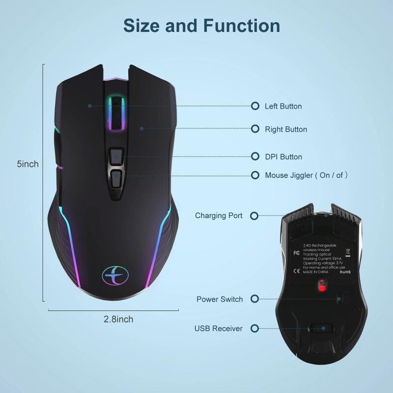 1. This is not only an external wireless mouse, but also a mouse jitter to help keep your computer active, press the mouse jitter button to enter or exit the jitter function