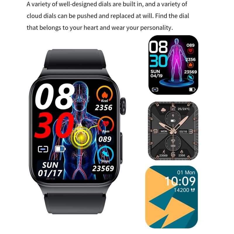 12. Υποστηρίζει ανάλυση ΗΚΓ σε πραγματικό χρόνο με αυτοκόλλητα στήθους, παρακολούθηση με ζώνη ΗΚΓ, μη επεμβατικό έλεγχο σακχάρου στο αίμα, παρακολούθηση καρδιακού ρυθμού, παρακολούθηση αρτηριακής πίεσης, παρακολούθηση οξυγόνου στο αίμα και πολλαπλές αθλητικές λειτουργίες.