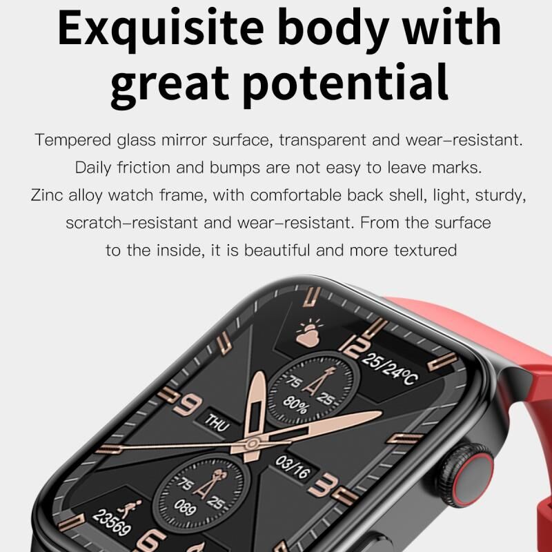 E500 Έξυπνο ρολόι με οθόνη HD τετράγωνου σχήματος 1,83 ιντσών, λουράκι TPU, υποστήριξη παρακολούθησης ΗΚΓ / μη επεμβατικού σακχάρου αίματος (Κόκκινο)
