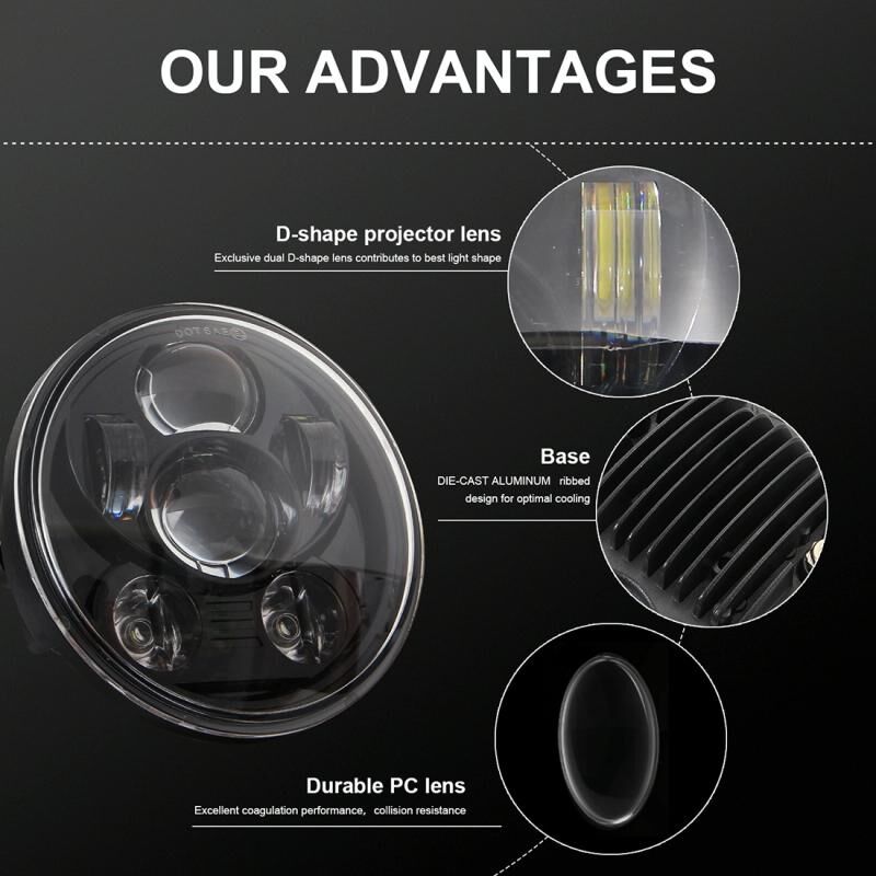 EagleVision DC9-30V 35W 6000K 4000LM 5.75 inch Round Motorcycle 6LEDs Headlight for Harley-Davidson