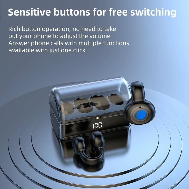 Ακουστικά Bluetooth με αγωγιμότητα ήχου τύπου κλιπ αυτιού, με ψηφιακή οθόνη και θήκη φόρτισης (Μαύρο)