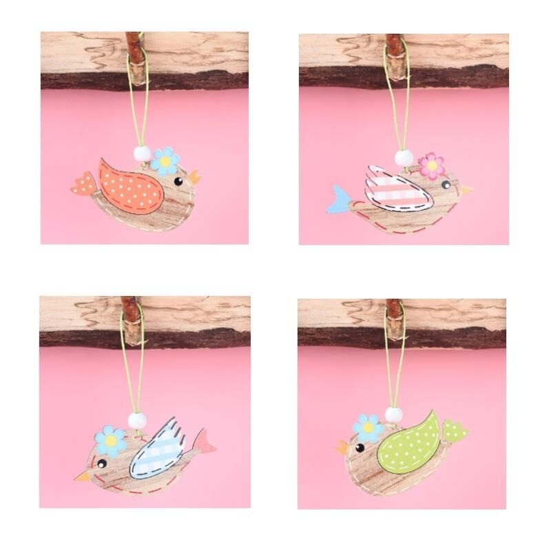 Easter Wooden Pendants Festive Atmosphere Decorative Items(Blue-winged Bird)