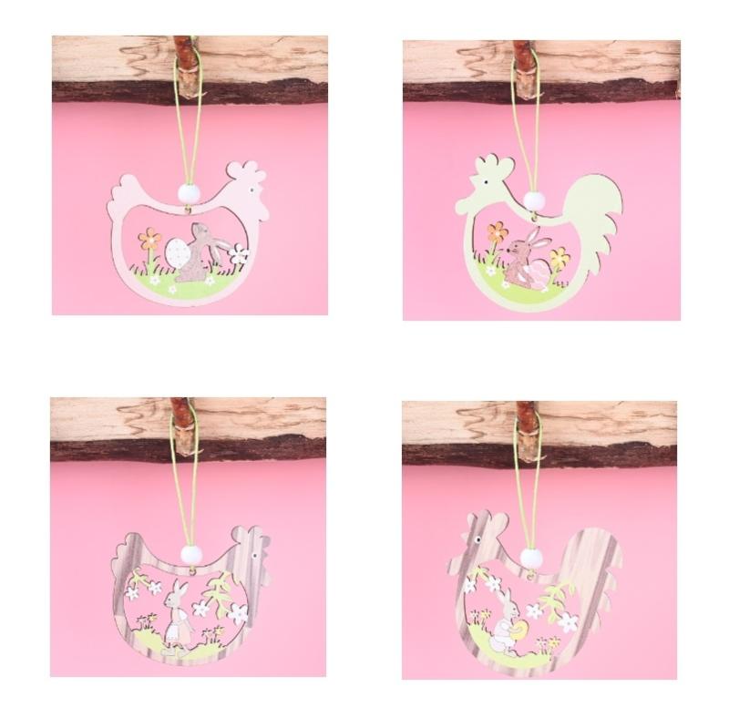 Easter Wooden Pendants Festive Atmosphere Decorative Items(Egg Rabbit Wood Grain Chicken)