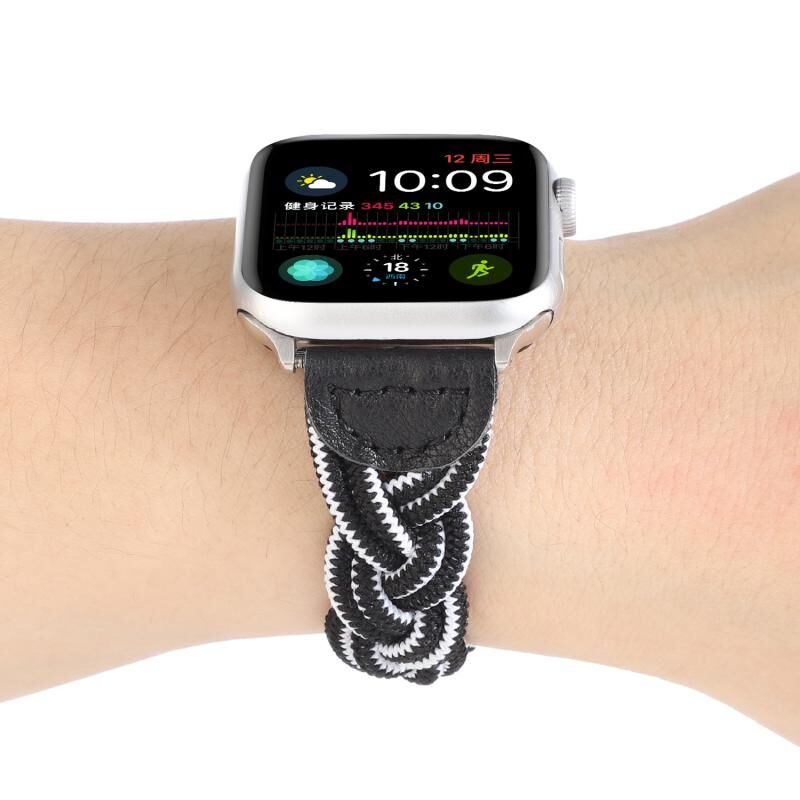 Ελαστικός Πλεκτός Ιμάντας Ρολογιού για Apple Watch Series 9&8&7 41mm / SE 3&SE 2&6&SE&5&4 40mm / 3&2&1 38mm, Μήκος: 120mm (Μαύρο Λευκό)