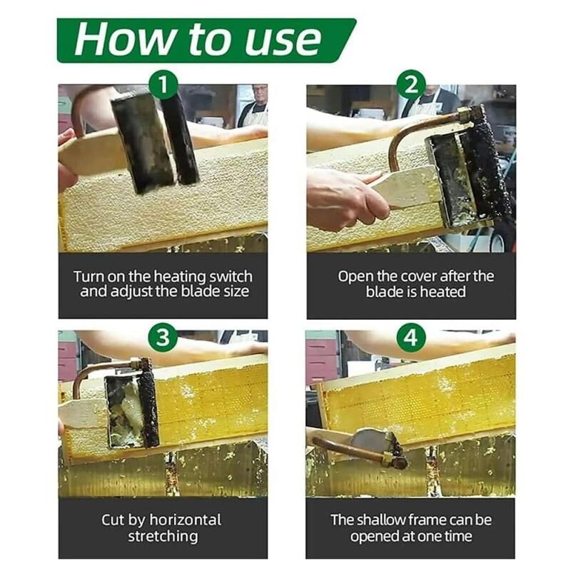 1. Μπορεί εύκολα και αποτελεσματικά να αφαιρέσει το στρώμα κεριού στην επιφάνεια του μελιού και να εξαγάγει μέλι, κάτι που είναι πιο βολικό από τα χειροκίνητα μαχαίρια μελισσοκομίας.
