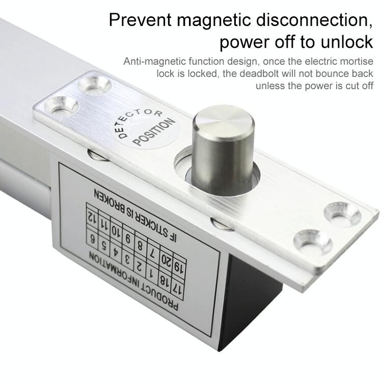 Η ηλεκτρική κλειδαριά αποτελείται από δύο μέρη. Το ένα είναι το στήριγμα μαγνήτη από ανοξείδωτο χάλυβα, το άλλο είναι το σώμα της κλειδαριάς. Όταν την εγκαθιστάτε, το διάκενο μεταξύ της στήριξης του μαγνήτη και του σώματος της κλειδαριάς δεν πρέπει να υπερβαίνει τα 3 mm. Η οπή στο στήριγμα μαγνήτη θα πρέπει να είναι ακριβώς ευθυγραμμισμένη με το μπουλόνι. Ο μαγνήτης πρέπει να τοποθετηθεί στη μέση.