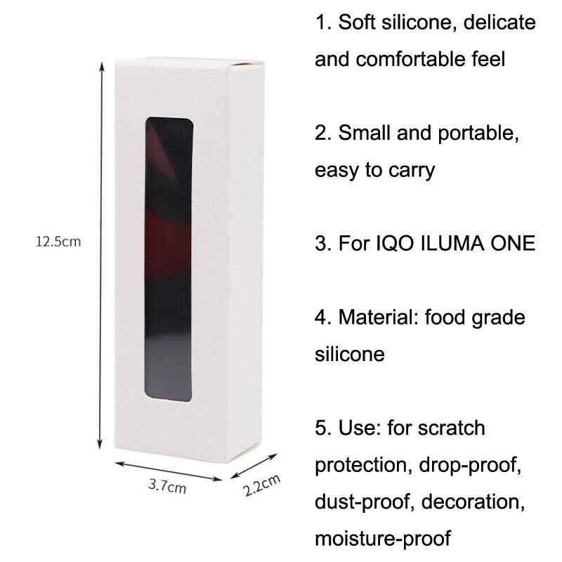 1. Υλικό: σιλικόνη κατάλληλη για τρόφιμα 2. Απαλή σιλικόνη, λεπτή και άνετη αίσθηση 3. Μικρό και φορητό, εύκολο στη μεταφορά 4. Για IQO ILUMA ONE 5. Σημείωση: Το προϊόν περιέχει μόνο τη προστατευτική θήκη, τίποτα άλλο 6. Υλικό: σιλικόνη κατάλληλη για τρόφιμα 7. Χρήση: για προστασία από γρατζουνιές, αντικραδασμική προστασία, προστασία από σκόνη, διακόσμηση, προστασία από υγρασία 8. Διαστάσεις: 3,4 x 2 x 11,8cm 9. Βάρος: 28g