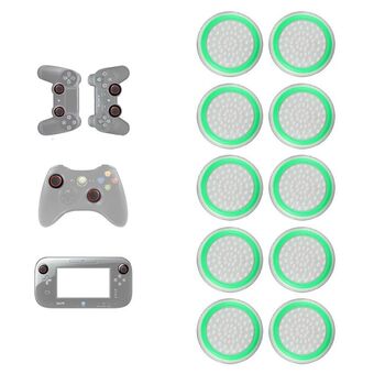 10 PCS Gamepad Silicone Luminous Button Cap Rocker Cap For PS5/PS4/PS3/ONE/360/PRO/series X/S(Transparent Light Green)