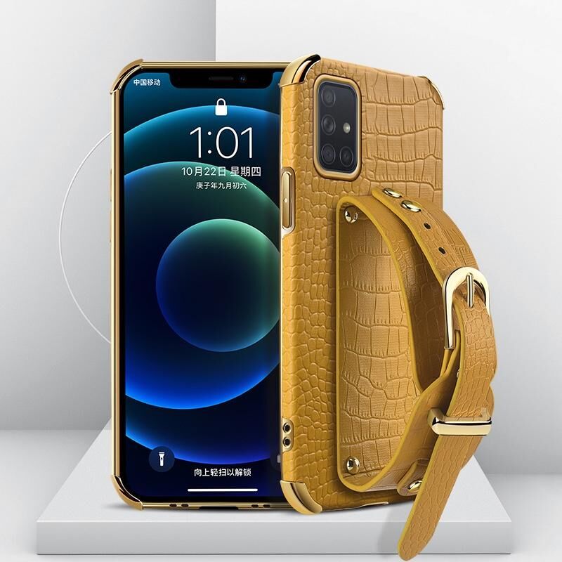 Θήκη από θερμοπλαστικό πολυουρεθάνιο (TPU) με επιμετάλλωση και σχέδιο δέρματος κροκόδειλου με λουρί καρπού για Samsung Galaxy A71 4G (Λευκό)