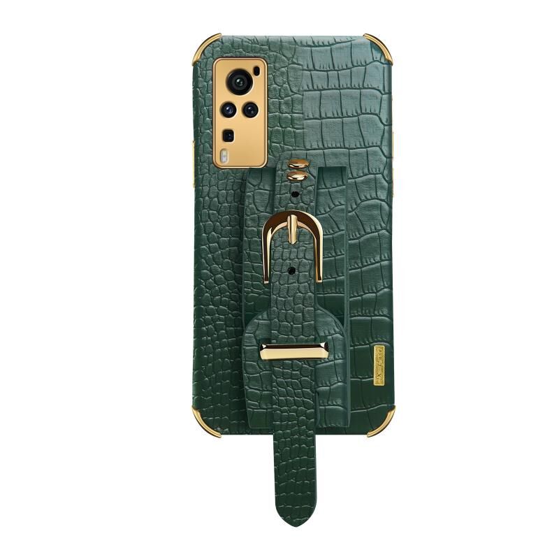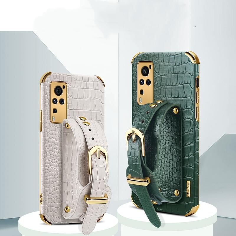 Θήκη από TPU με ηλεκτρολυτική επικάλυψη και σχέδιο δέρματος κροκόδειλου με λουρί καρπού για vivo X60 Pro (Λευκό)