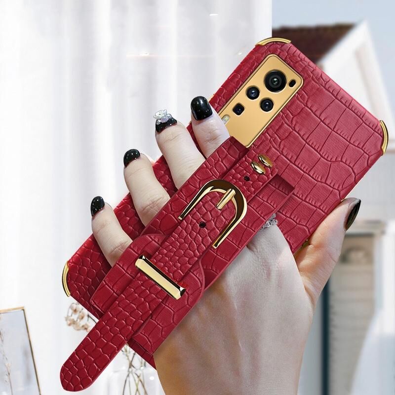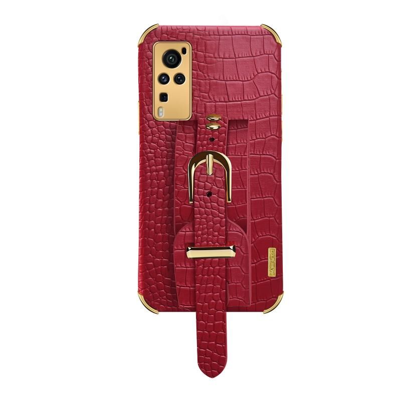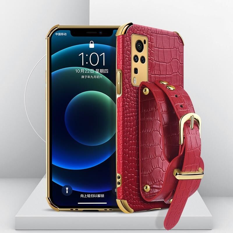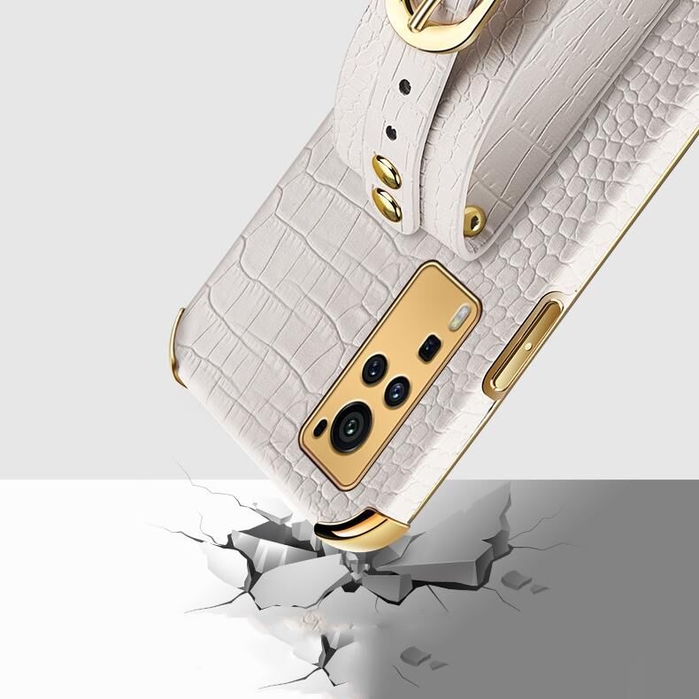 Θήκη από TPU με ηλεκτρολυτική επικάλυψη και σχέδιο δέρματος κροκόδειλου με λουρί καρπού για vivo X60 Pro (Λευκό)