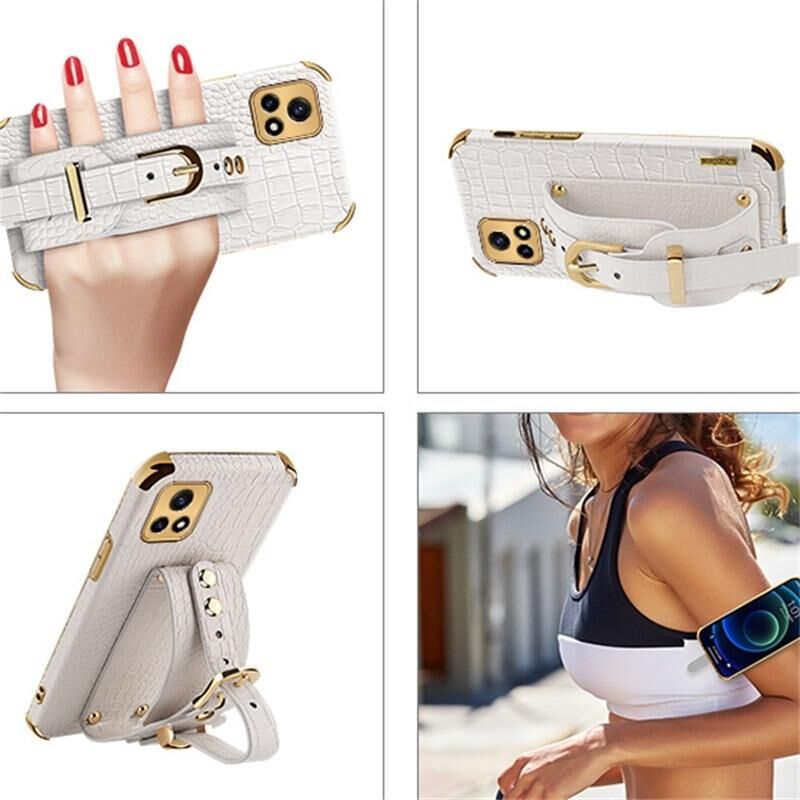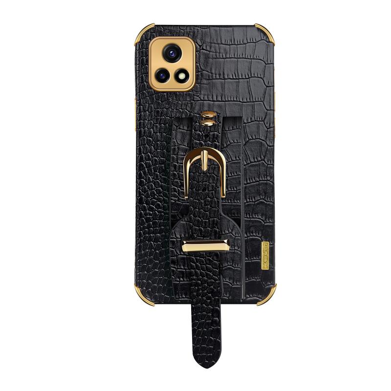 Θήκη από θερμοπλαστικό πολυουρεθάνιο (TPU) με επιμετάλλωση και σχέδιο δέρματος κροκόδειλου με λουρί καρπού για vivo Y52s 5G (Μαύρο)