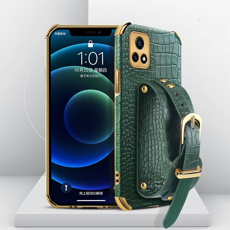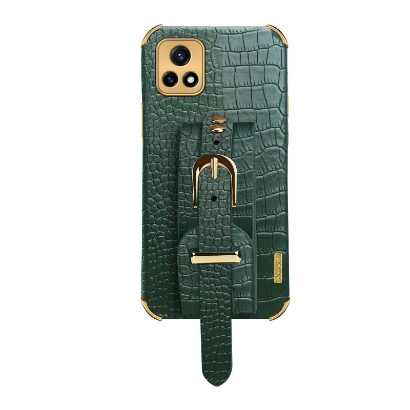 Θήκη από θερμοπλαστικό πολυουρεθάνιο (TPU) με επιμετάλλωση και σχέδιο δέρματος κροκόδειλου με λουρί καρπού για vivo Y52s 5G (πράσινο)