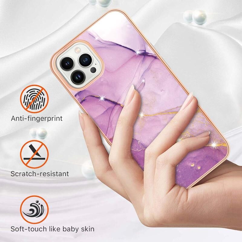 Electroplating Marble Pattern Dual-side IMD TPU Shockproof τηλέφωνο υπόθεση για το iPhone 15 Pro Max (μωβ 001)