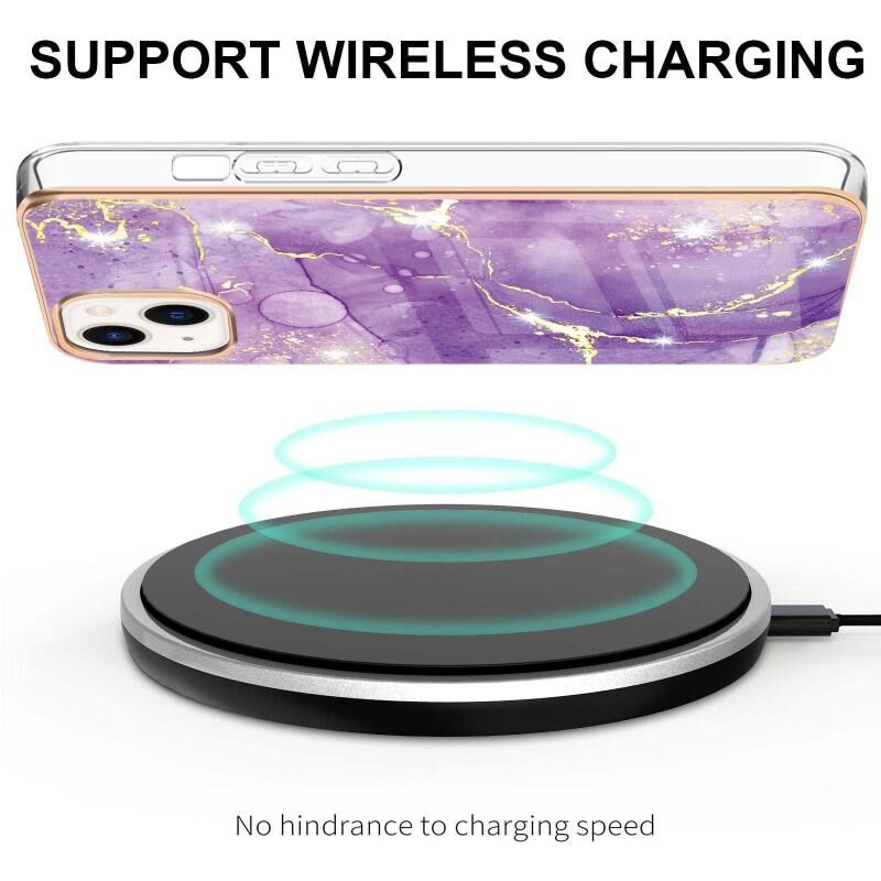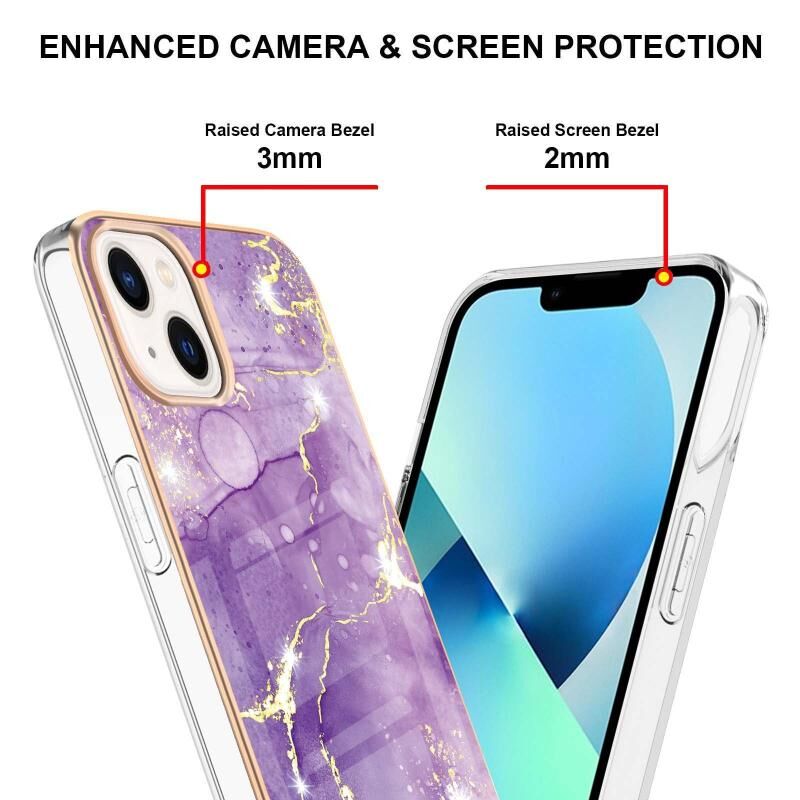 Electroplating Marble Pattern Dual-side IMD TPU Shockproof τηλέφωνο υπόθεση για το iPhone 15 (μωβ 002)