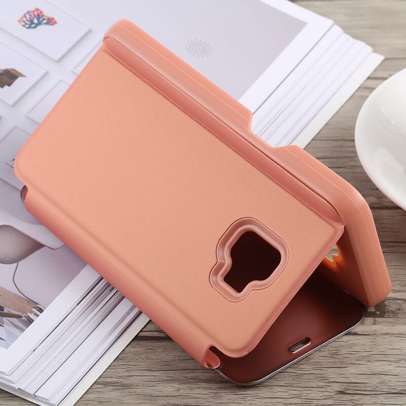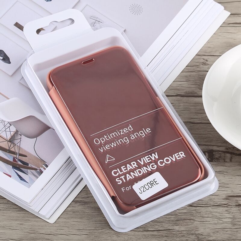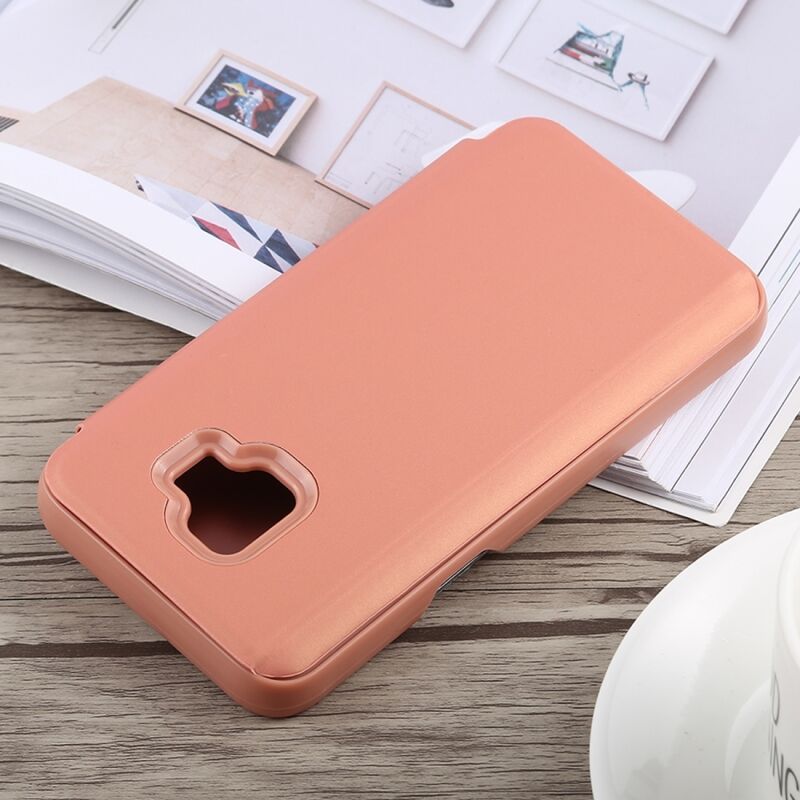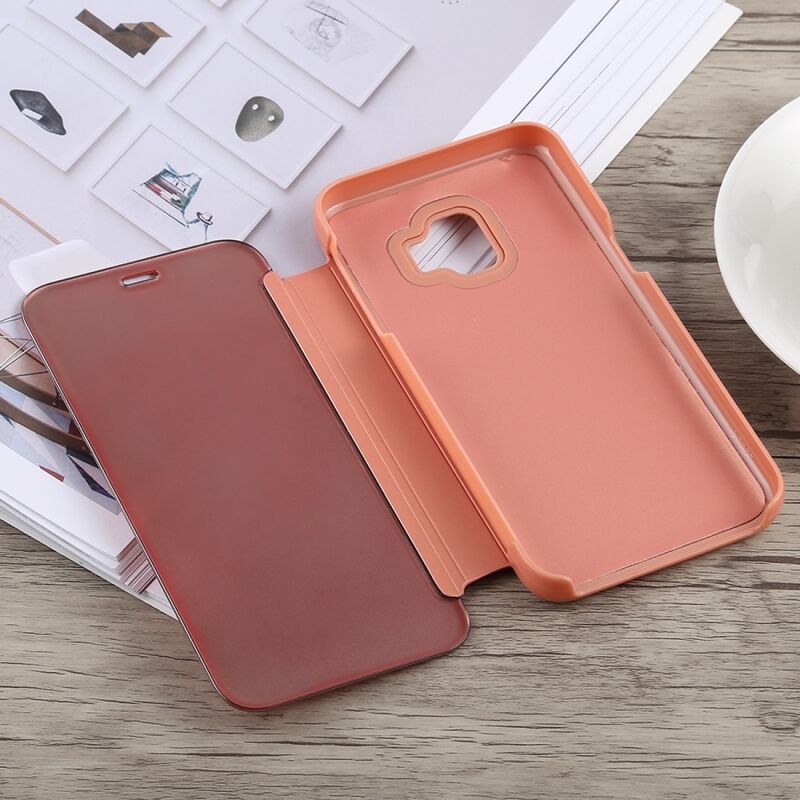Electroplating Mirror Horizontal Flip Case για Galaxy J2 Core, με θήκη (ροζ χρυσό)
