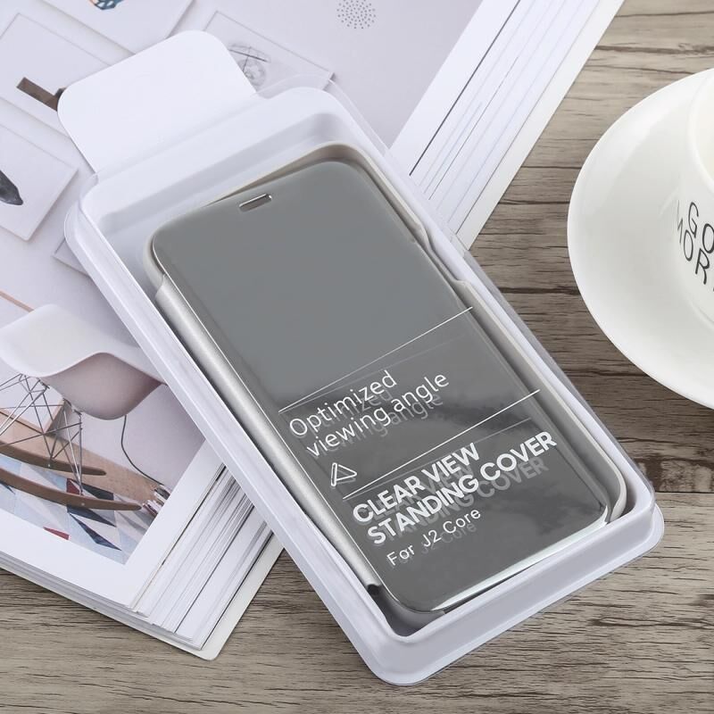 Electroplating Mirror Horizontal Flip Case για Galaxy J2 Core, με θήκη (Ασημί)