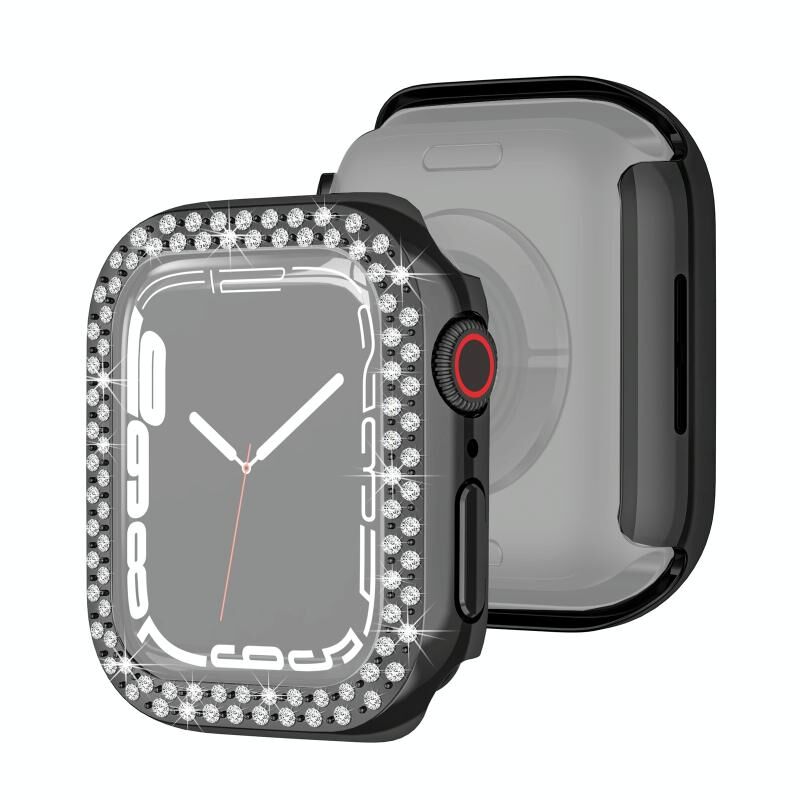 Electroplating PC Double Rows Diamond Protective Case For Apple Watch Series 9 / 8 / 7 41mm(Black)