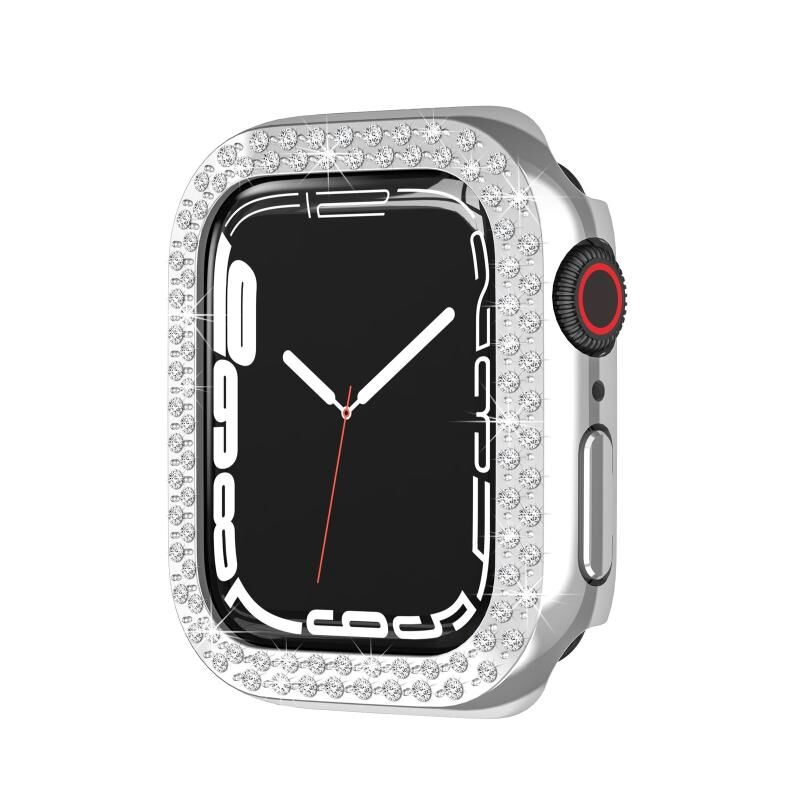 Electroplating PC Double Rows Diamond Protective Case For Apple Watch Series 9 / 8 / 7 45mm(Silver)