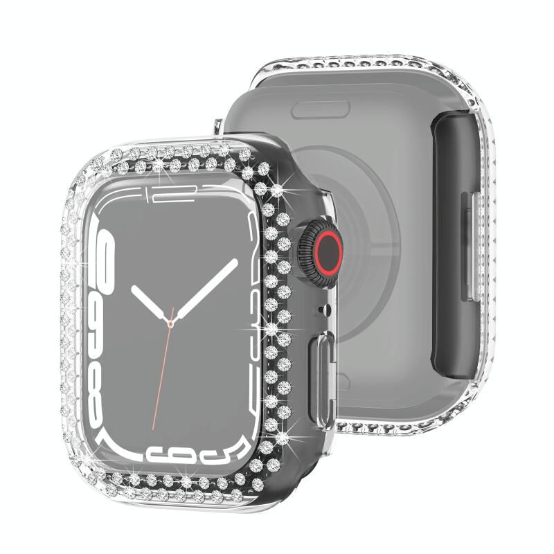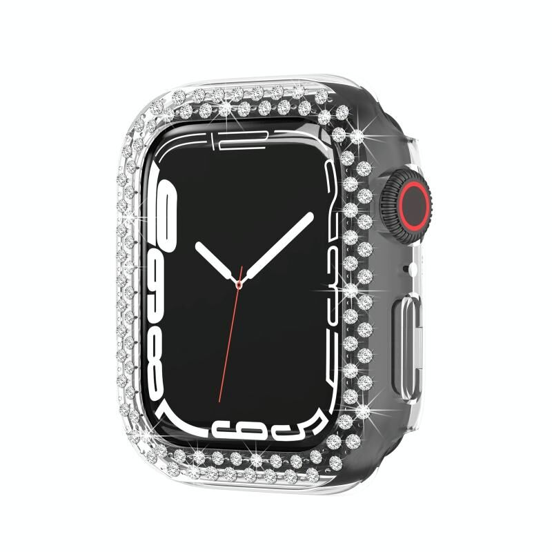 Electroplating PC Double Rows Diamond Protective Case For Apple Watch Series 9 / 8 / 7 45mm(Transparent)