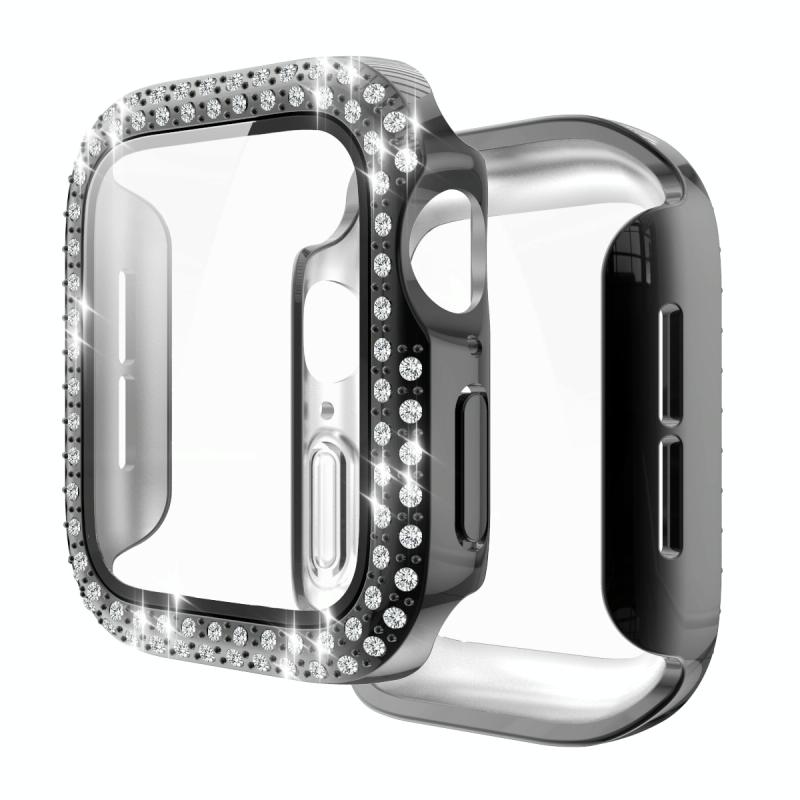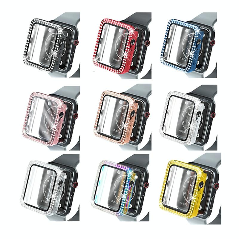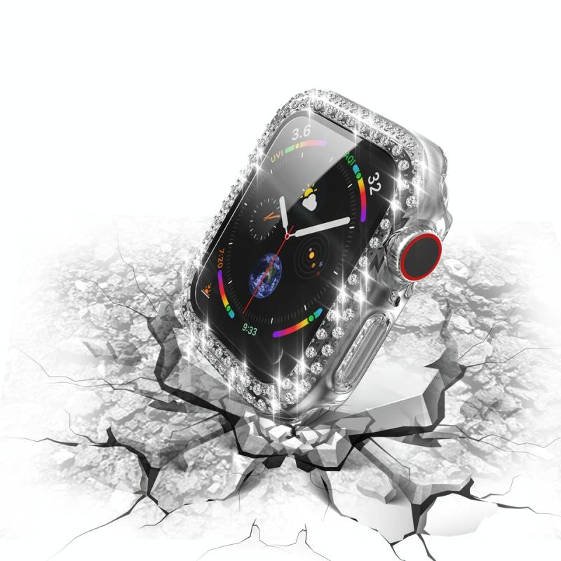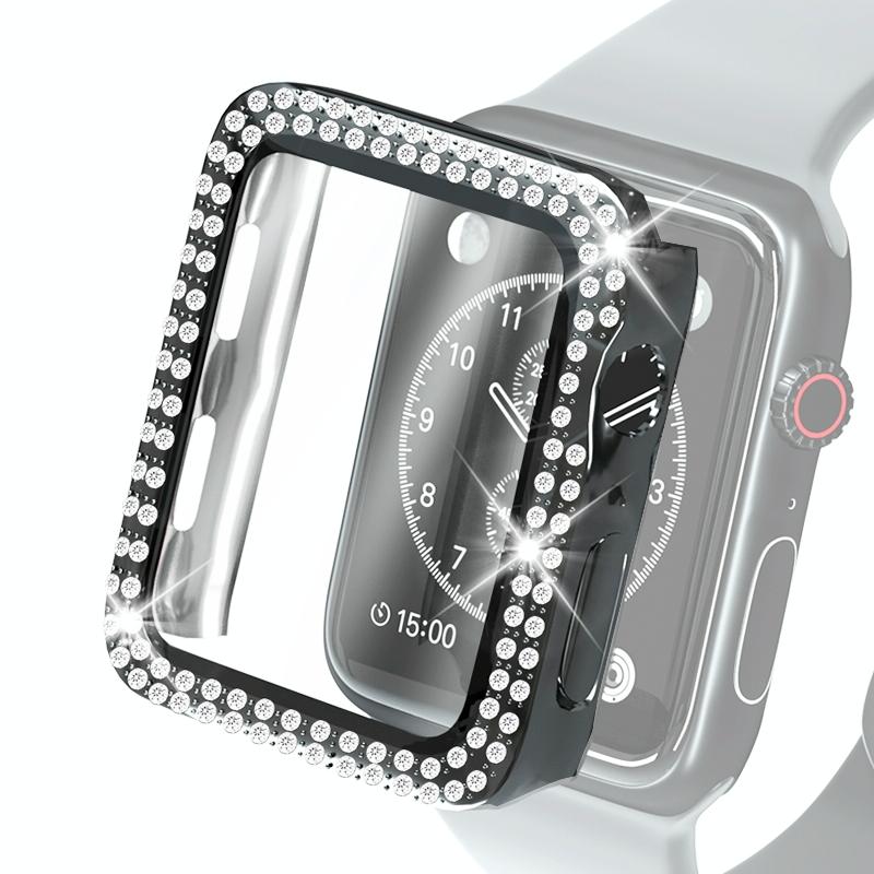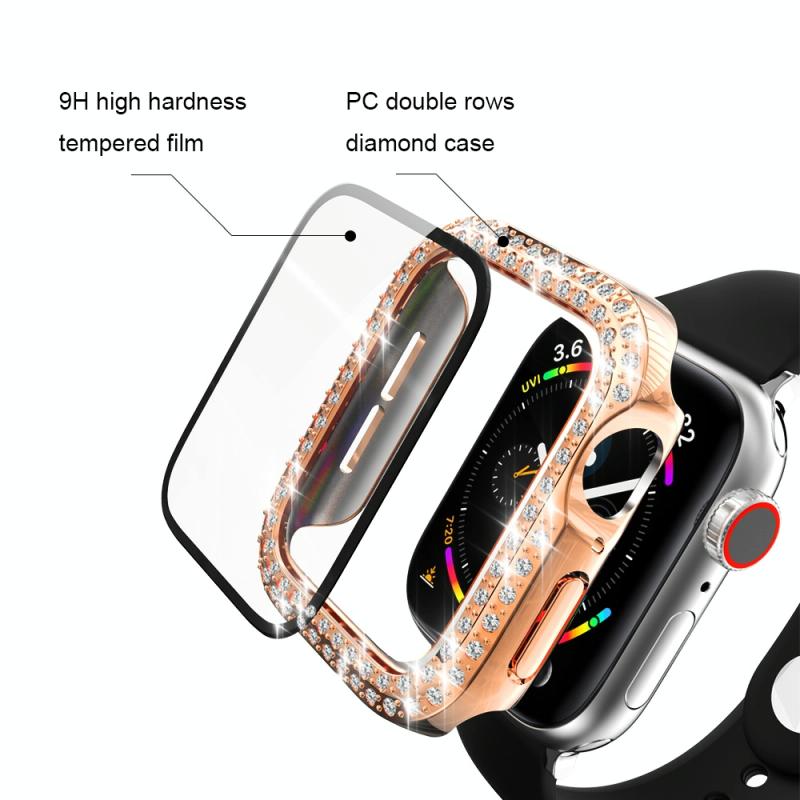 Θήκη Προστασίας Διπλής Σειράς Διαμαντιών με Ηλεκτροεπίχρυση για Apple Watch Series 3 & 2 & 1 42mm (Χρυσό) με Επικάλυψη από Ελαστικό Γυαλί.