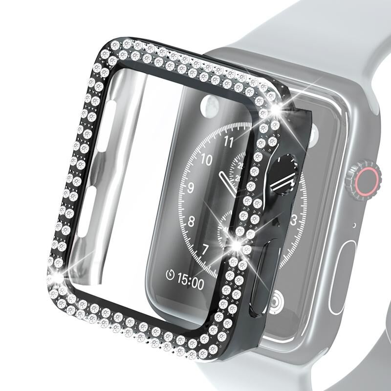 Electroplating PC Double Rows Diamond Protective Case with Tempered Glass Film For Apple Watch Series 6 & SE & 5 & 4 40mm(Black)