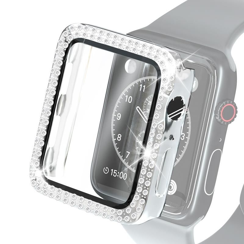 Electroplating PC Double Rows Diamond Protective Case with Tempered Glass Film For Apple Watch Series 6 & SE & 5 & 4 40mm(Silver)