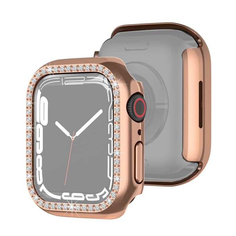 Electroplating PC Single Row Diamond Protective Case For Apple Watch Series 9 / 8 / 7 45mm(Rose Gold)