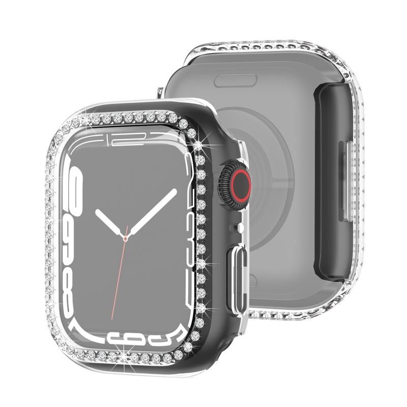Electroplating PC Single Row Diamond Protective Case For Apple Watch Series 9 / 8 / 7 45mm(Transparent)
