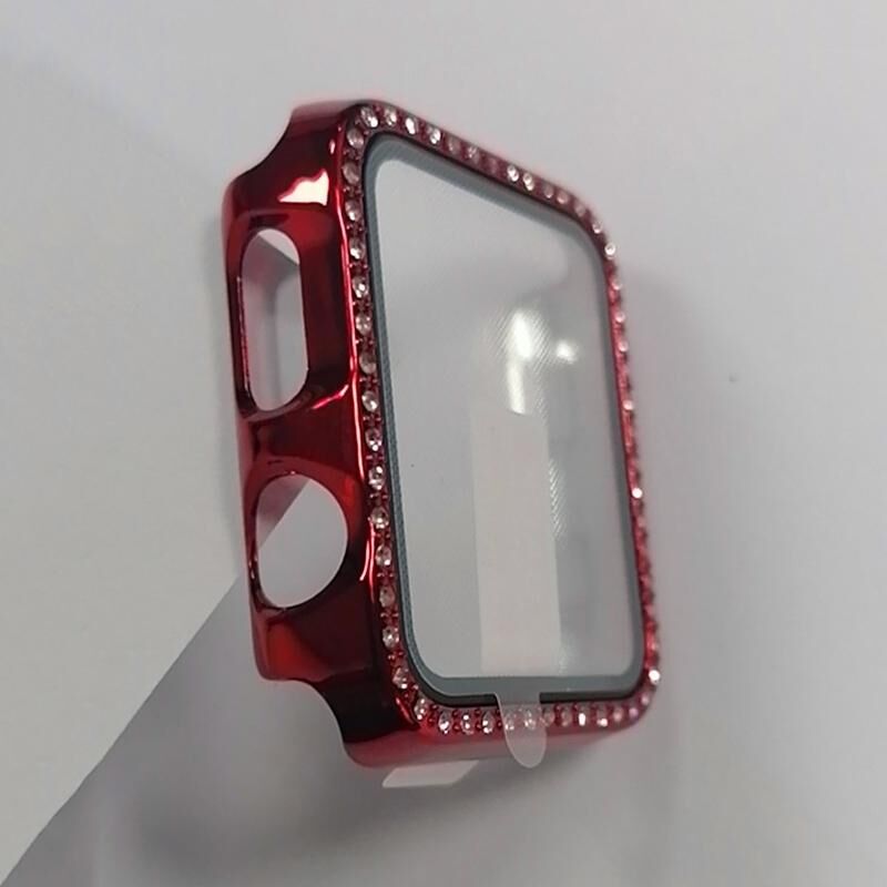 Electroplating PC Single Row Diamond Protective Case with Tempered Glass Film For Apple Watch Series 3 & 2 & 1 38mm(Red)