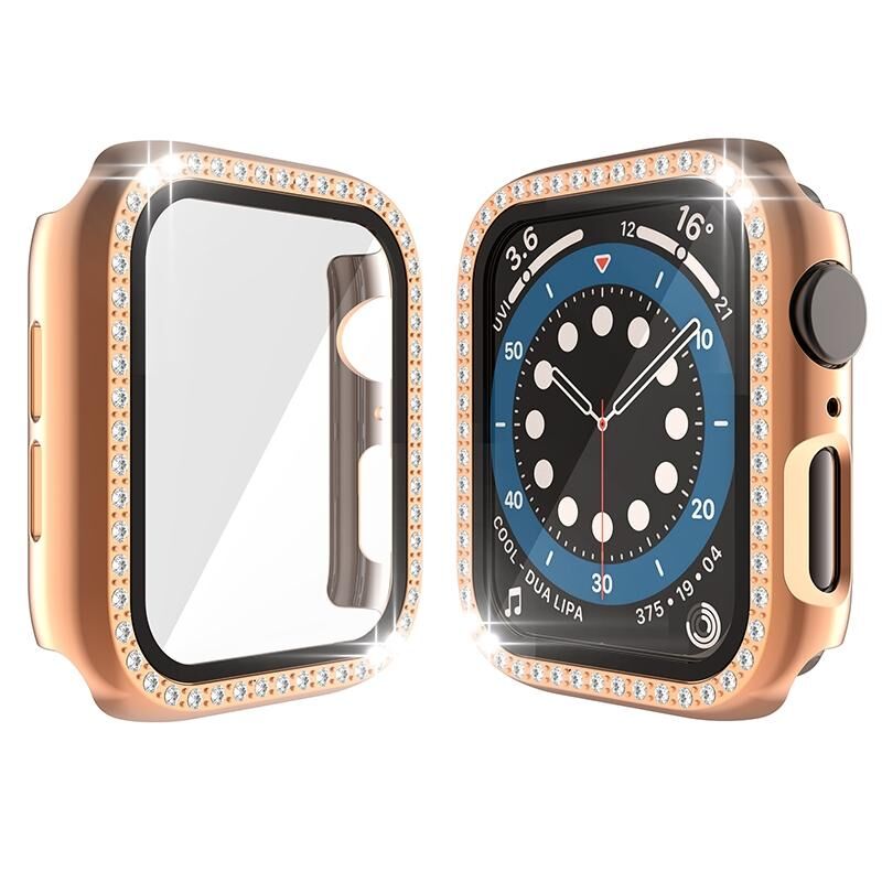 Electroplating PC Single Row Diamond Protective Case with Tempered Glass Film For Apple Watch Series 3 & 2 & 1 42mm(Rose Gold)