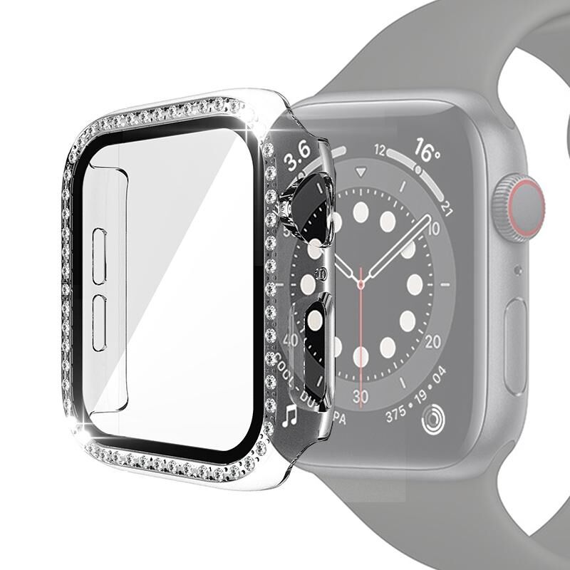 Electroplating PC Single Row Diamond Protective Case with Tempered Glass Film For Apple Watch Series 3 & 2 & 1 42mm(Transparent)
